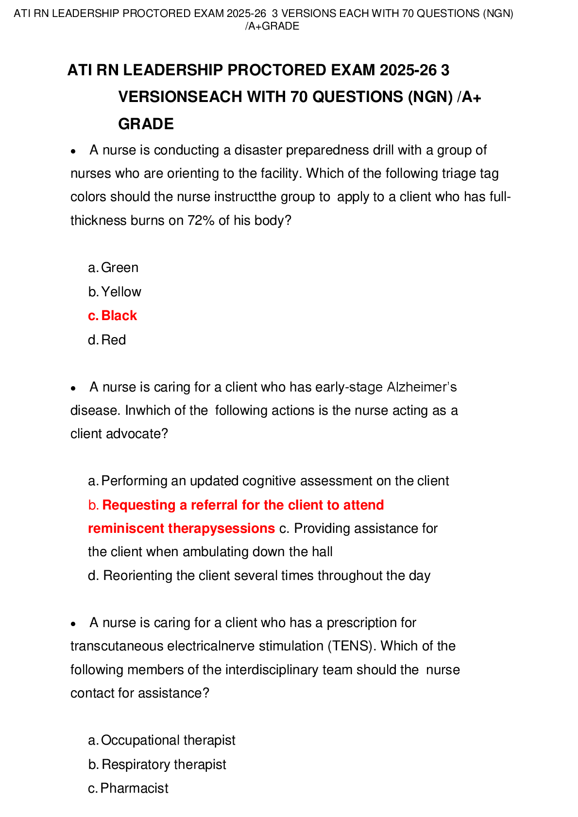 ATI RN LEADERSHIP > QUESTIONS & ANSWERS > ATI RN LEADERSHIP PROCTORED EXAM 2025-26 3 VERSIONS EACH WITH 70 QUESTIONS (NGN) /A+ GRADE (All)