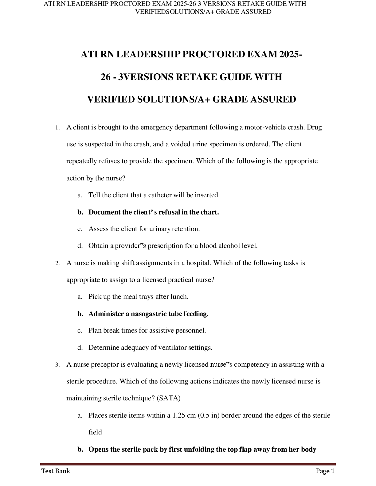 ATI RN LEADERSHIP > QUESTIONS & ANSWERS > ATI RN LEADERSHIP PROCTORED EXAM 2025 26 - 3 VERSIONS RETAKE GUIDE WITH VERIFIED SOLUTIONS/A+ GRADE ASSURED (All)