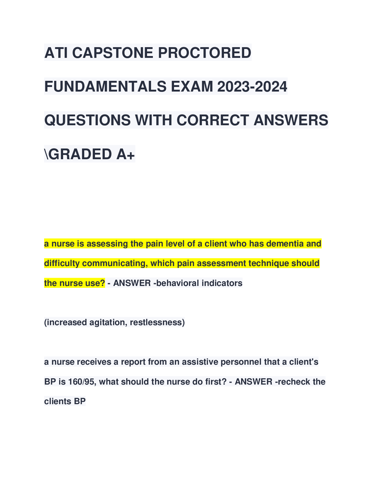 RN fundamentals/ATI RN Fundamentals > EXAM > ATI CAPSTONE PROCTORED FUNDAMENTALS EXAM 2023-2024 QUESTIONS WITH CORRECT ANSWERS \GRADED A+ (All)