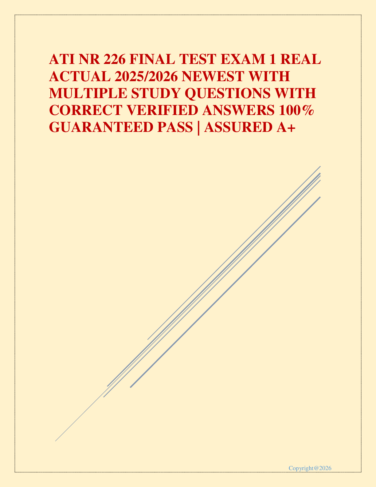 RN fundamentals/ATI RN Fundamentals > EXAM > ATI NR 226 FINAL TEST EXAM 1 REAL ACTUAL 2025/2026 NEWEST WITH MULTIPLE STUDY QUESTIONS WITH CORRECT VERIFIED ANSWERS 100% GUARANTEED PASS | ASSURED A+ (All)