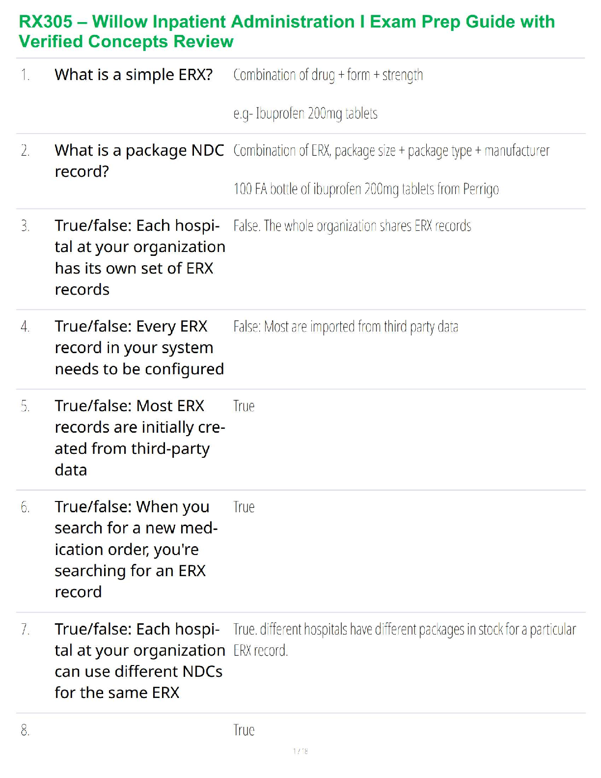 Clinical Medicine > STUDY GUIDE > RX305 – Willow Inpatient Administration I Exam Prep Guide with Verified Concepts Review (All)