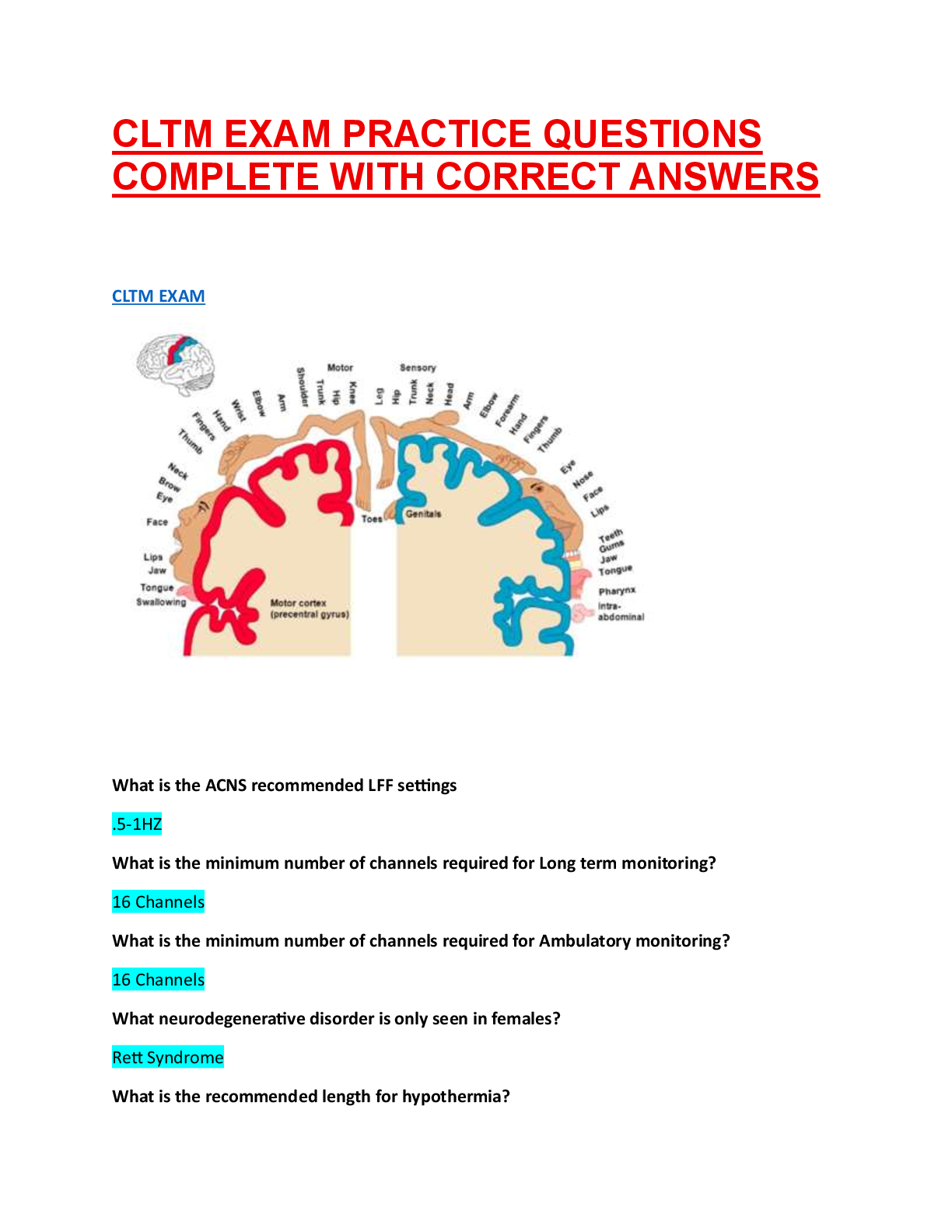 Clinical Medicine > A-Level Mark Scheme > CLTM EXAM PRACTICE QUESTIONS COMPLETE WITH CORRECT ANSWERS (All)