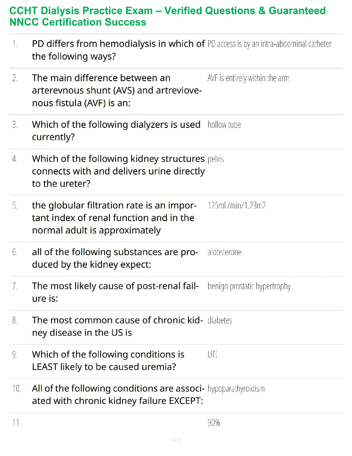 Clinical Medicine > QUESTIONS & ANSWERS > CCHT Dialysis Practice Exam – Verified Questions & Guaranteed NNCC Certification Success (All)