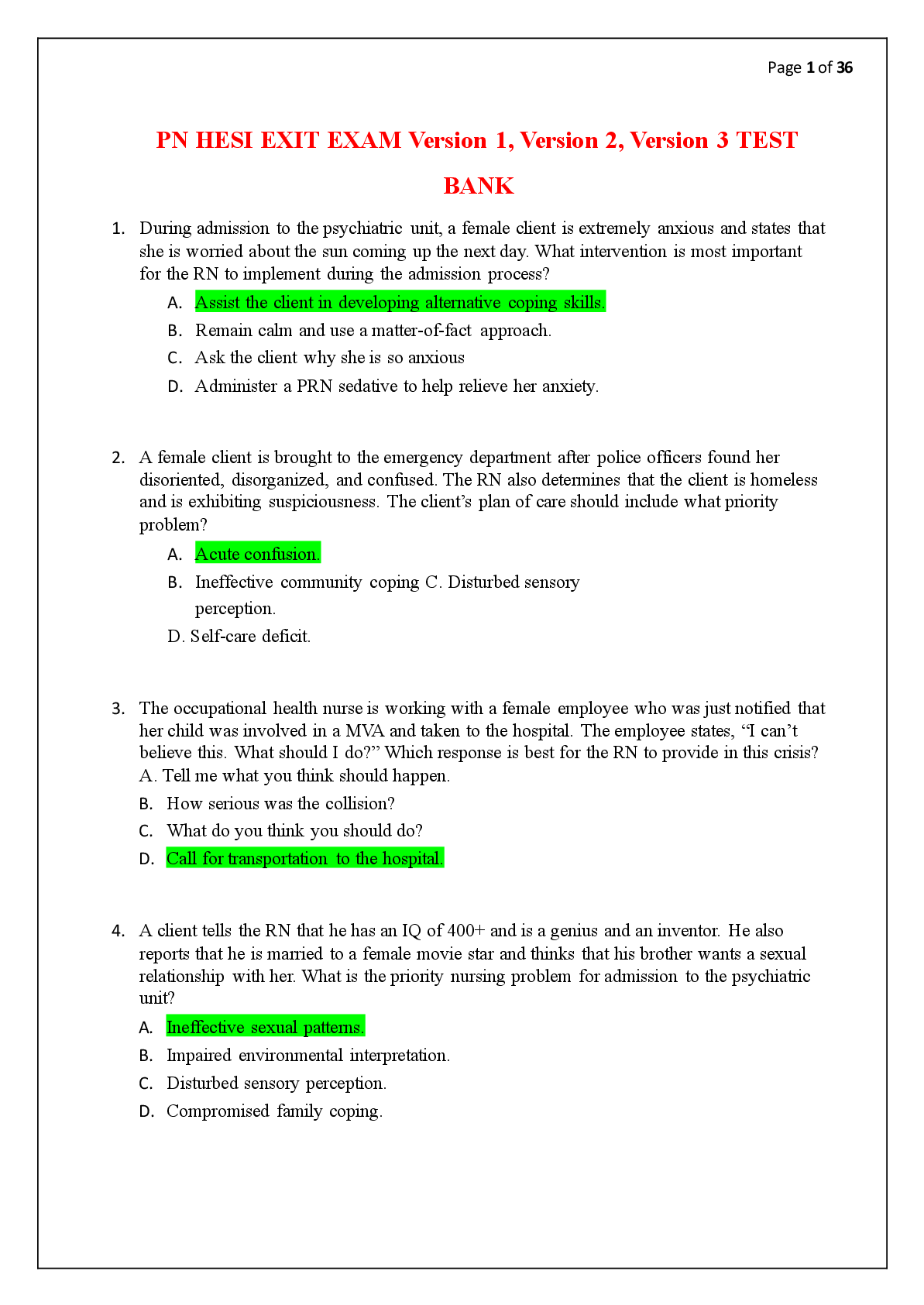 HESI Med Surg > TEST BANKS > PN HESI EXIT EXAM Version 1, Version 2, Version 3 Test Bank (All)