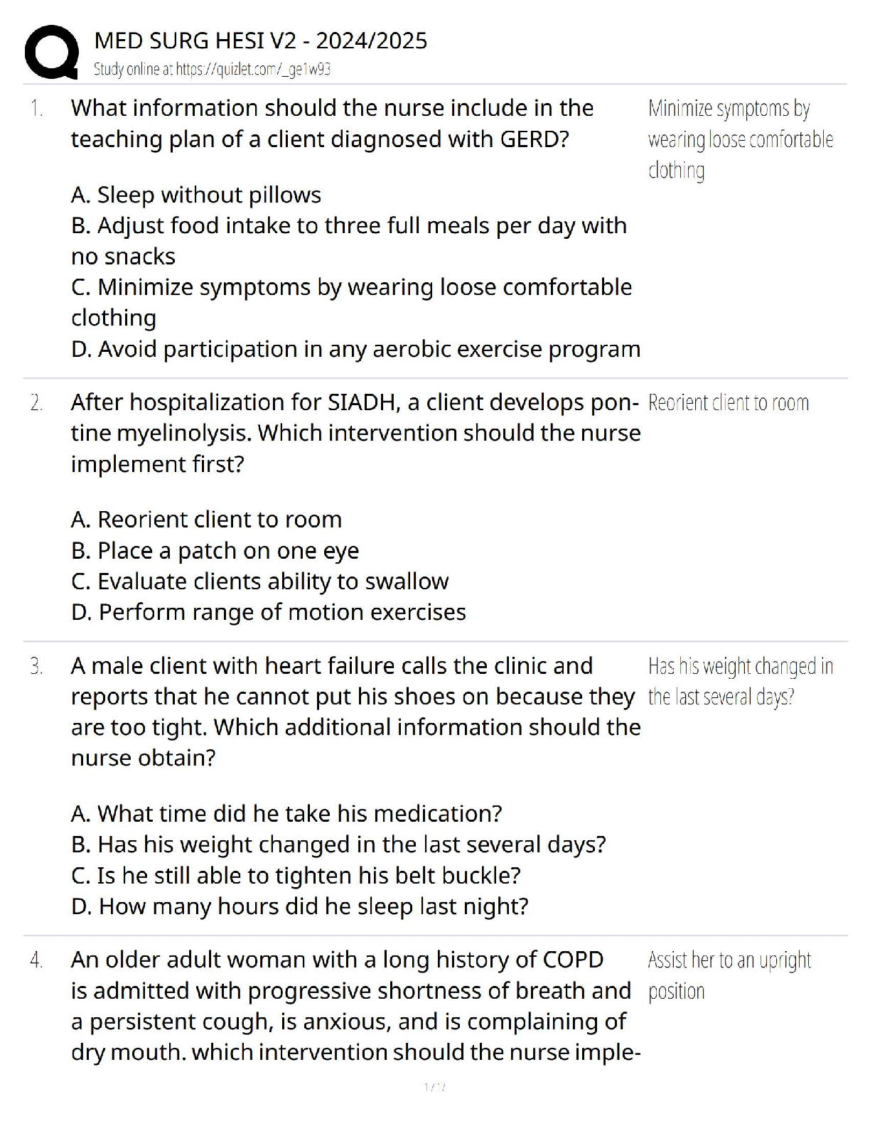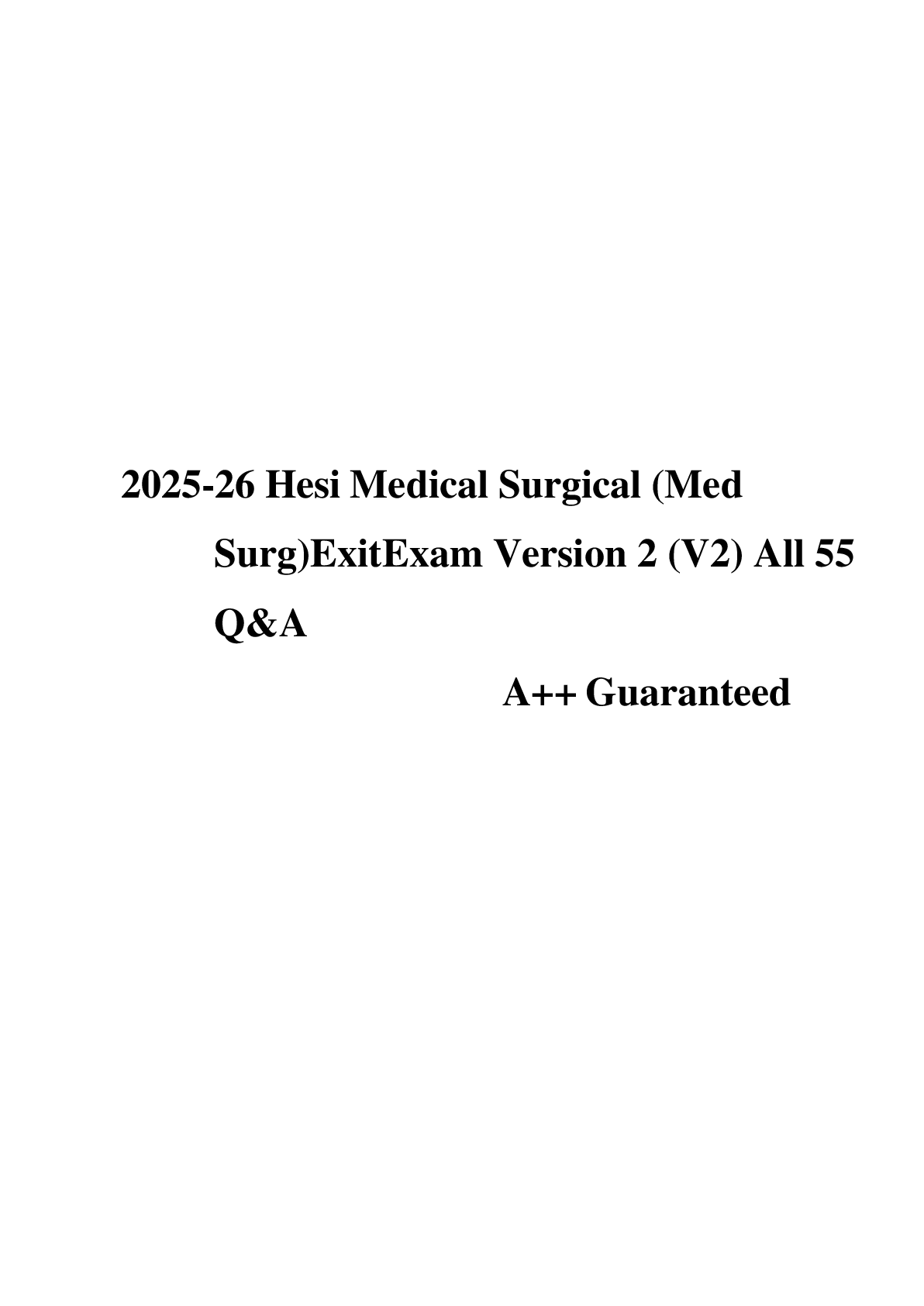 HESI Med Surg > QUESTIONS & ANSWERS > 2025-26 Hesi Medical Surgical (Med Surg)Exit Exam Version 2 (V2) All 55 Q&A (All)