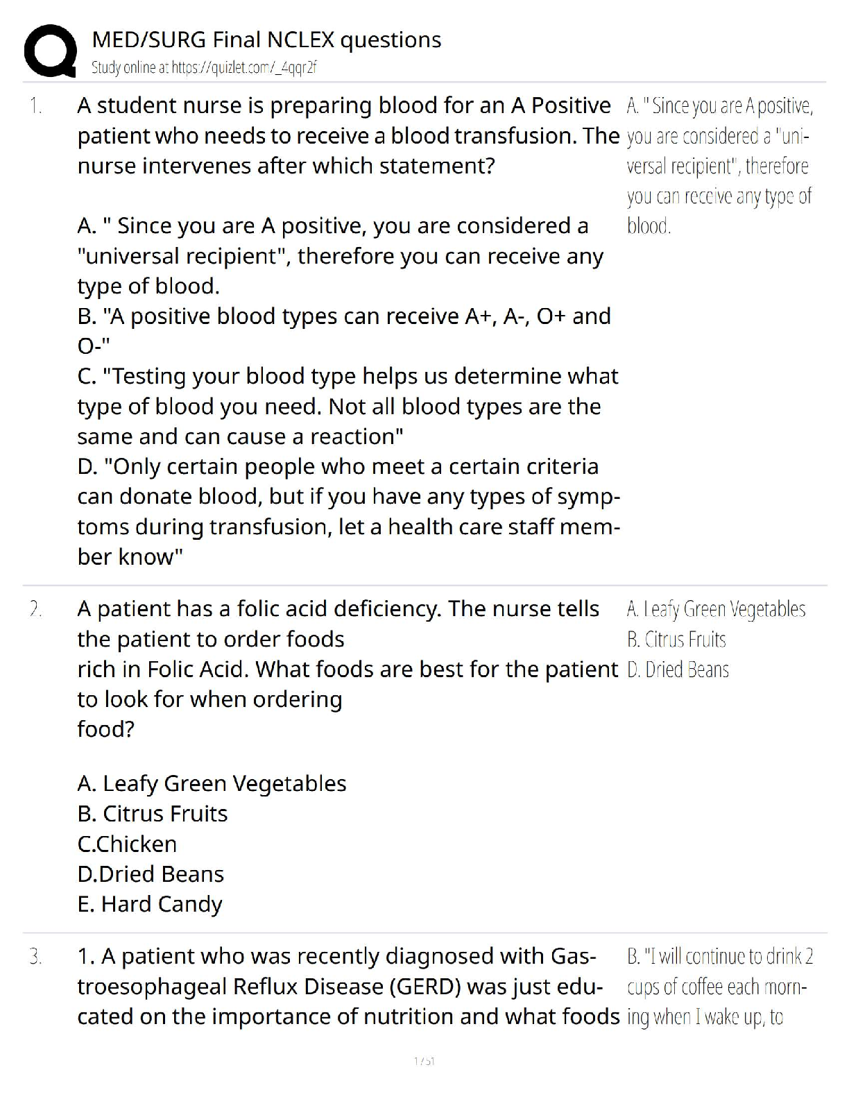 HESI Med Surg > QUESTIONS & ANSWERS > Med Surg Final NCLEX Questions / Score 100% / 2025 Update / Nursing Exam Test Bank & Study Guide (All)