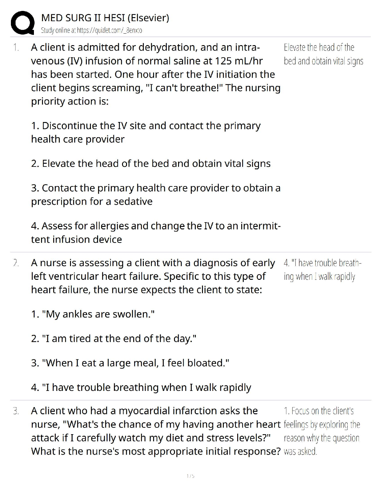 HESI Med Surg > QUESTIONS & ANSWERS > MED SURG II HESI (Elsevier) Exam Prep / Test Bank / Study Guide 2025 Update – Score 100% (All)