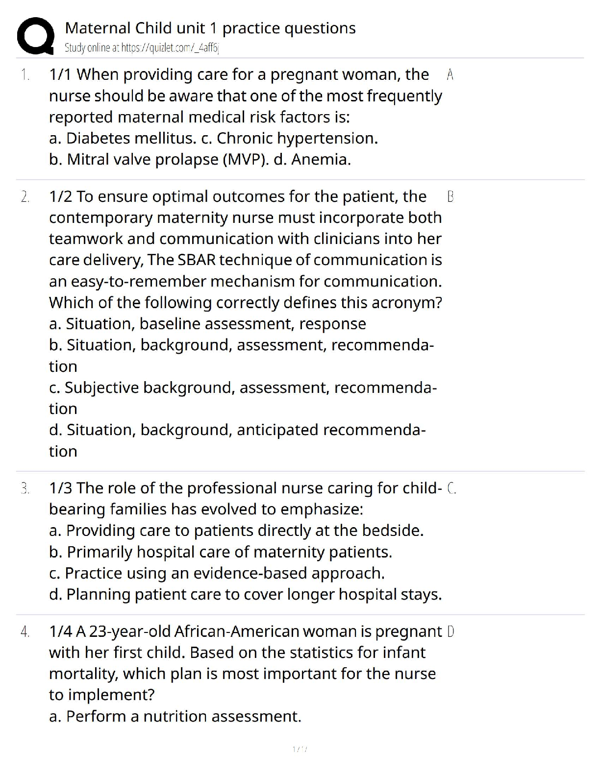 HESI Pediatrics| HESI PEDS > QUESTIONS & ANSWERS > Maternal Child Nursing Unit 1 Practice Questions / 2025 Update / Score 100% Exam Prep & Test Bank (All)