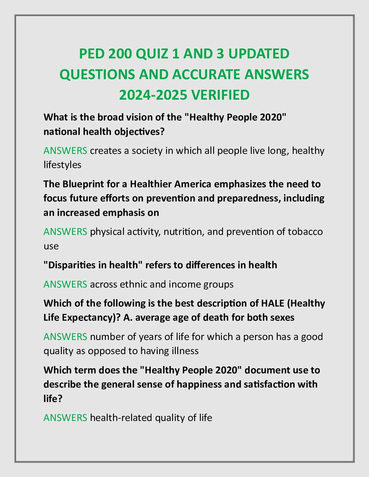 HESI RN PEDIATRICS > EXAMs > PED 200 QUIZ 1 AND 3 UPDATED QUESTIONS AND ACCURATE ANSWERS 2024-2025 VERIFIED (All)