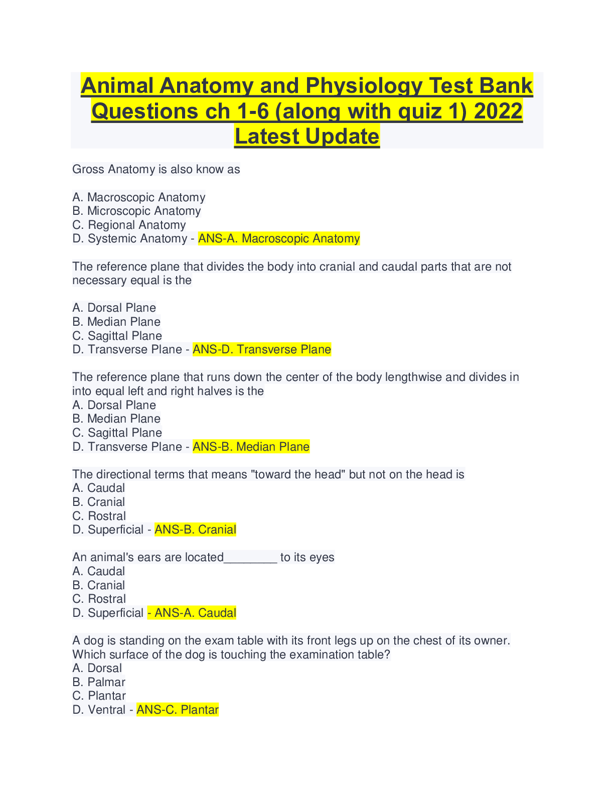 Animal Physiology > EXAM > Animal Anatomy and Physiology Test Bank Questions ch 1-6 (along with quiz 1) 2022 Latest Update (All)