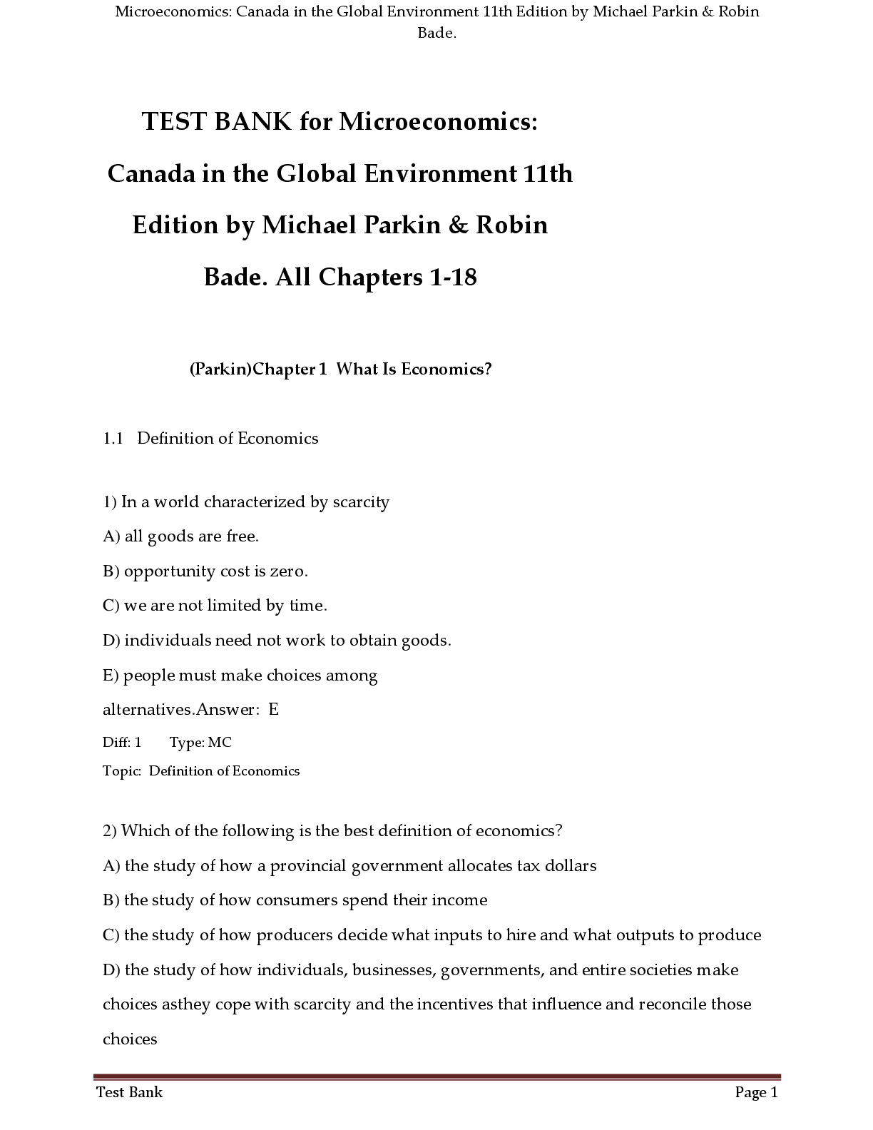 Microeconomics > TEST BANKS > TEST BANK for Microeconomics: Canada in the Global Environment 11th Edition by Michael Parkin & Robin Bade. All Chapters 1-18 (All)