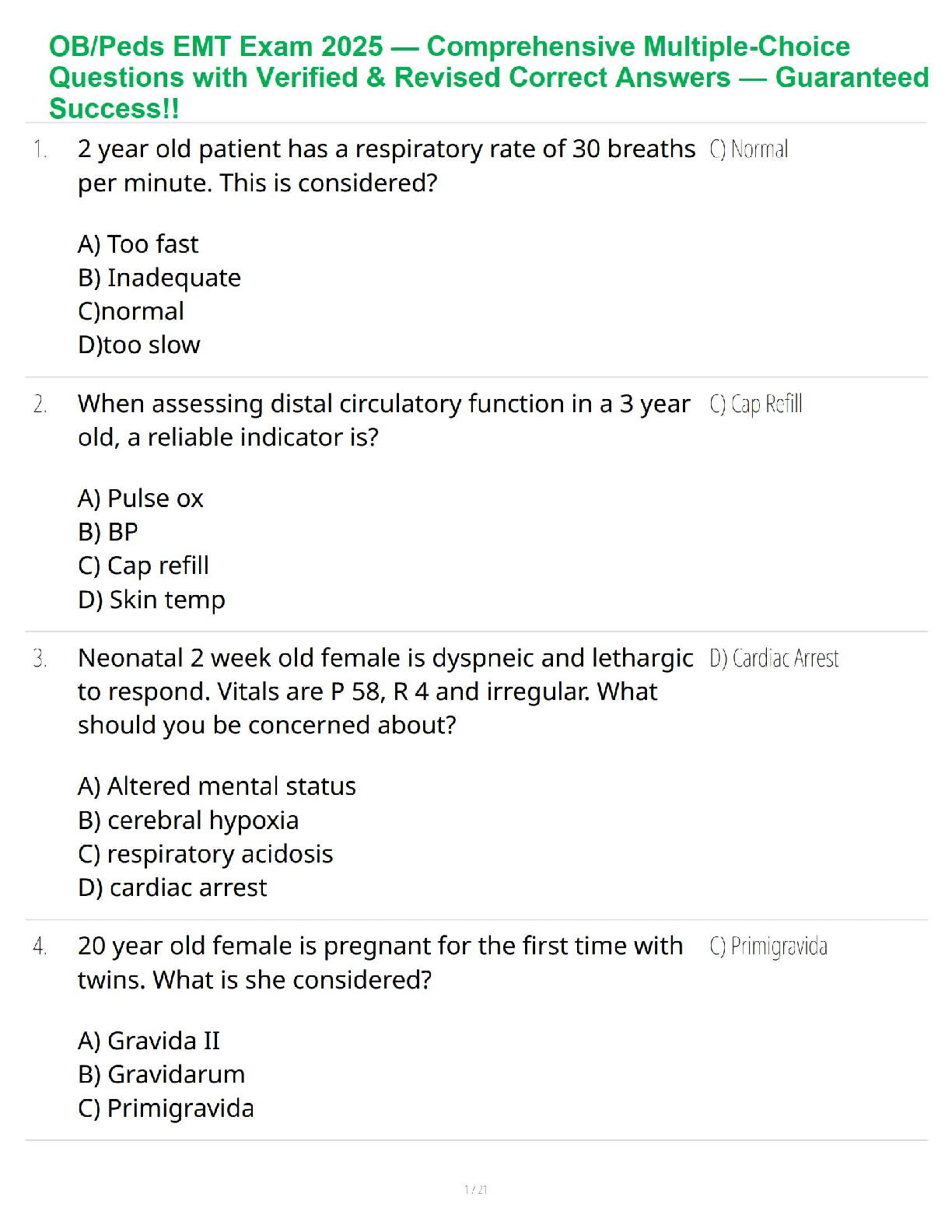 NURSING PEDIATRICS > STUDY GUIDE > OB/PEDS Paramedic Fisdap 2025 Master Study Guide — High-Quality Practice, Critical Concepts & Exam-Focused Learning (All)