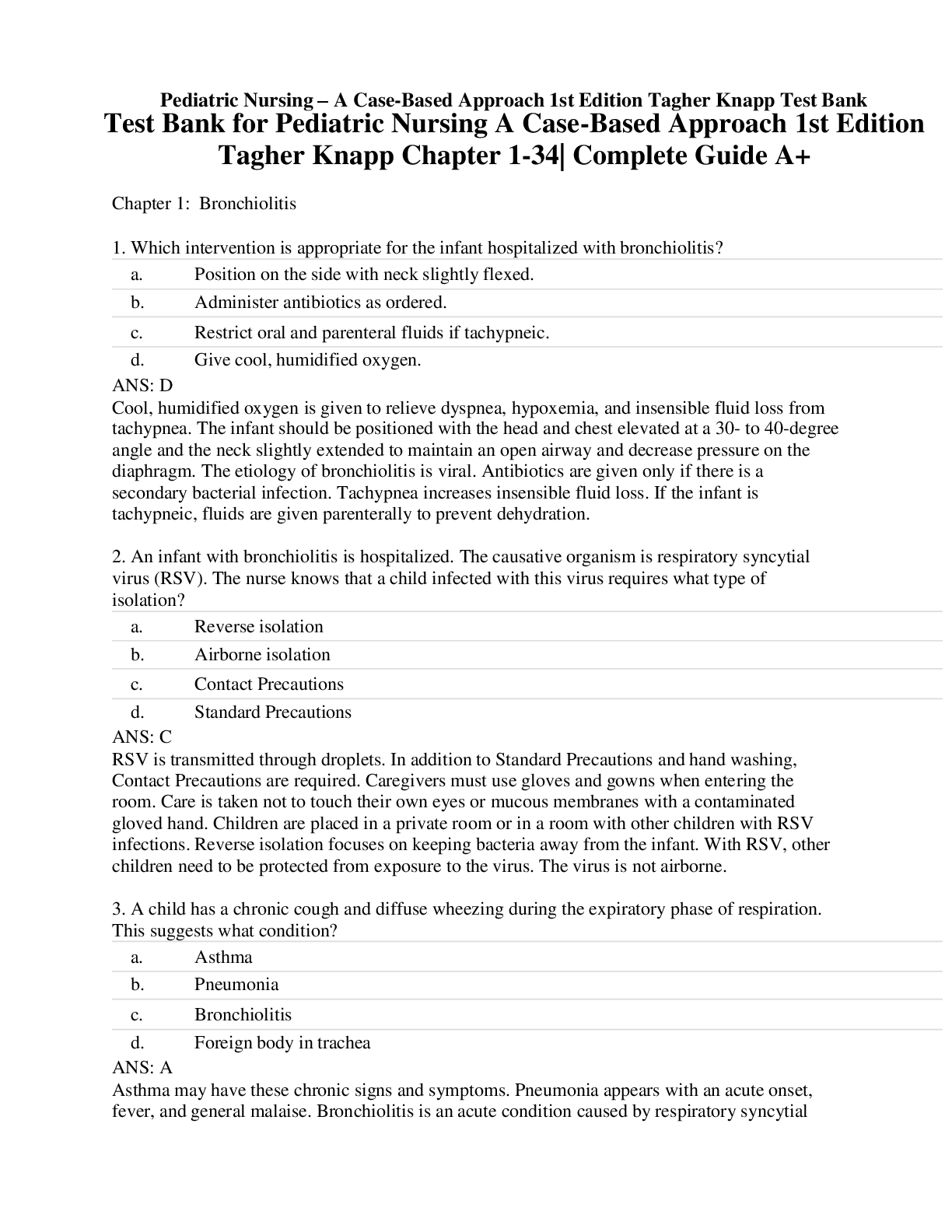 NURSING PEDIATRICS > TEST BANKS > Test Bank for Pediatric Nursing A Case-Based Approach 1st Edition Tagher Knapp Chapter 1-34| Complete Guide A+ (All)