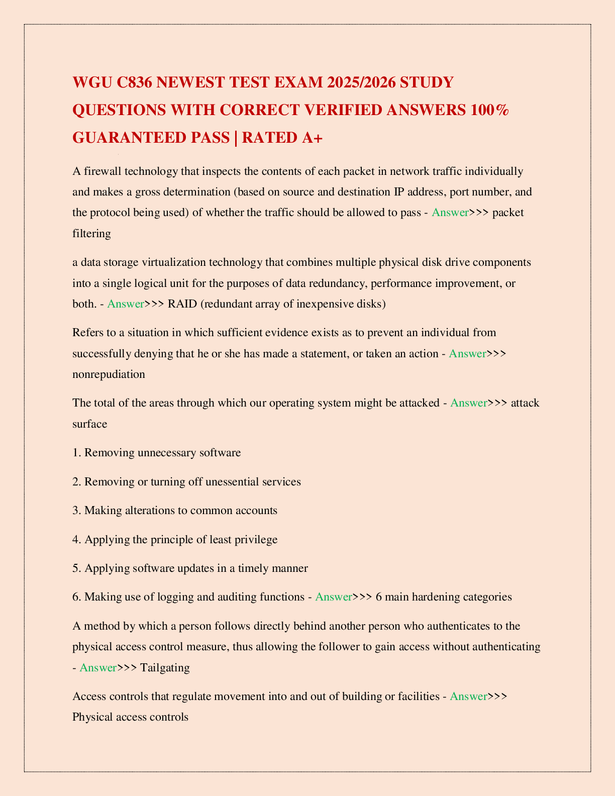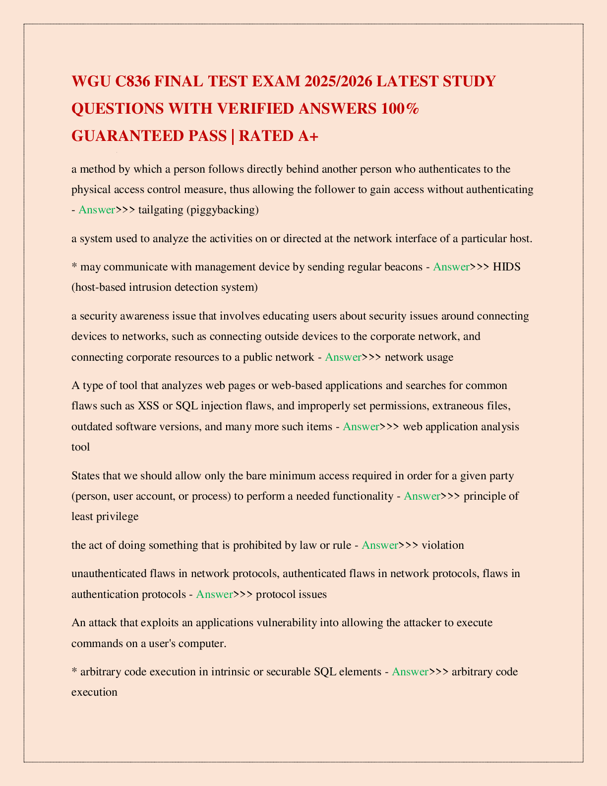 WGU C785 > EXAM > WGU C172 NETWORK AND SECURITY – FOUNDATIONS EXAM RATED A (All)