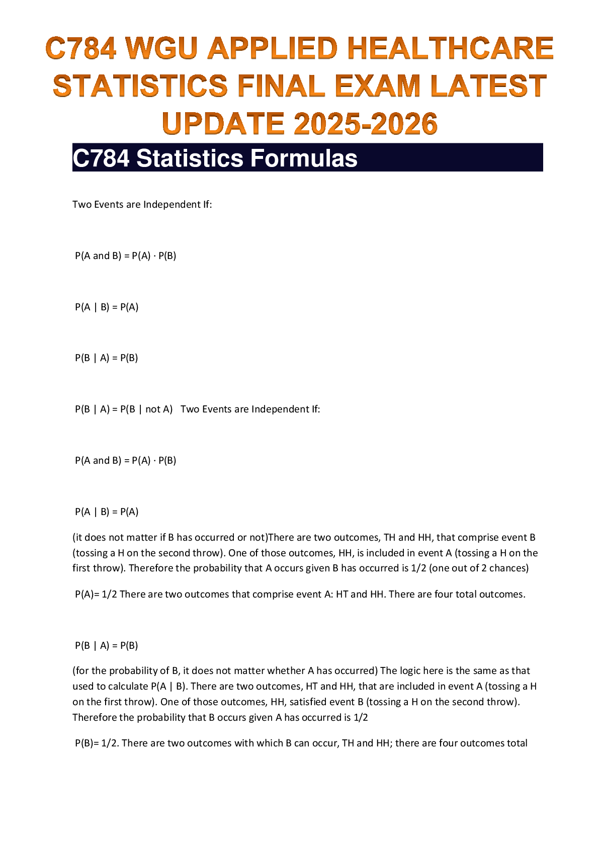 WGU C785 > EXAM > C784 WGU APPLIED HEALTHCARE STATISTICS FINAL EXAM LATEST UPDATE 2025-2026 (All)
