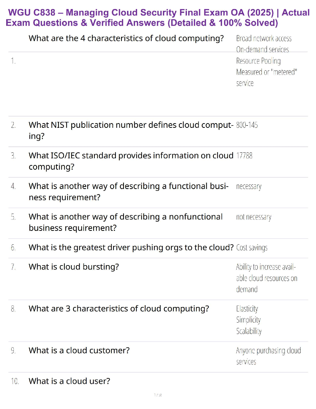WGU C785 > EXAM > WGU C838 – Managing Cloud Security Final Exam OA (2025) | Actual Exam Questions & Verified Answers (Detailed & 100% Solved) (All)