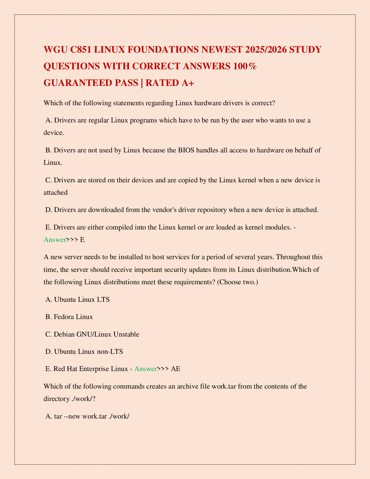 WGU C785 > EXAM > WGU C851 LINUX FOUNDATIONS NEWEST 2025/2026 STUDY QUESTIONS WITH CORRECT ANSWERS 100% GUARANTEED PASS | RATED A+ (All)