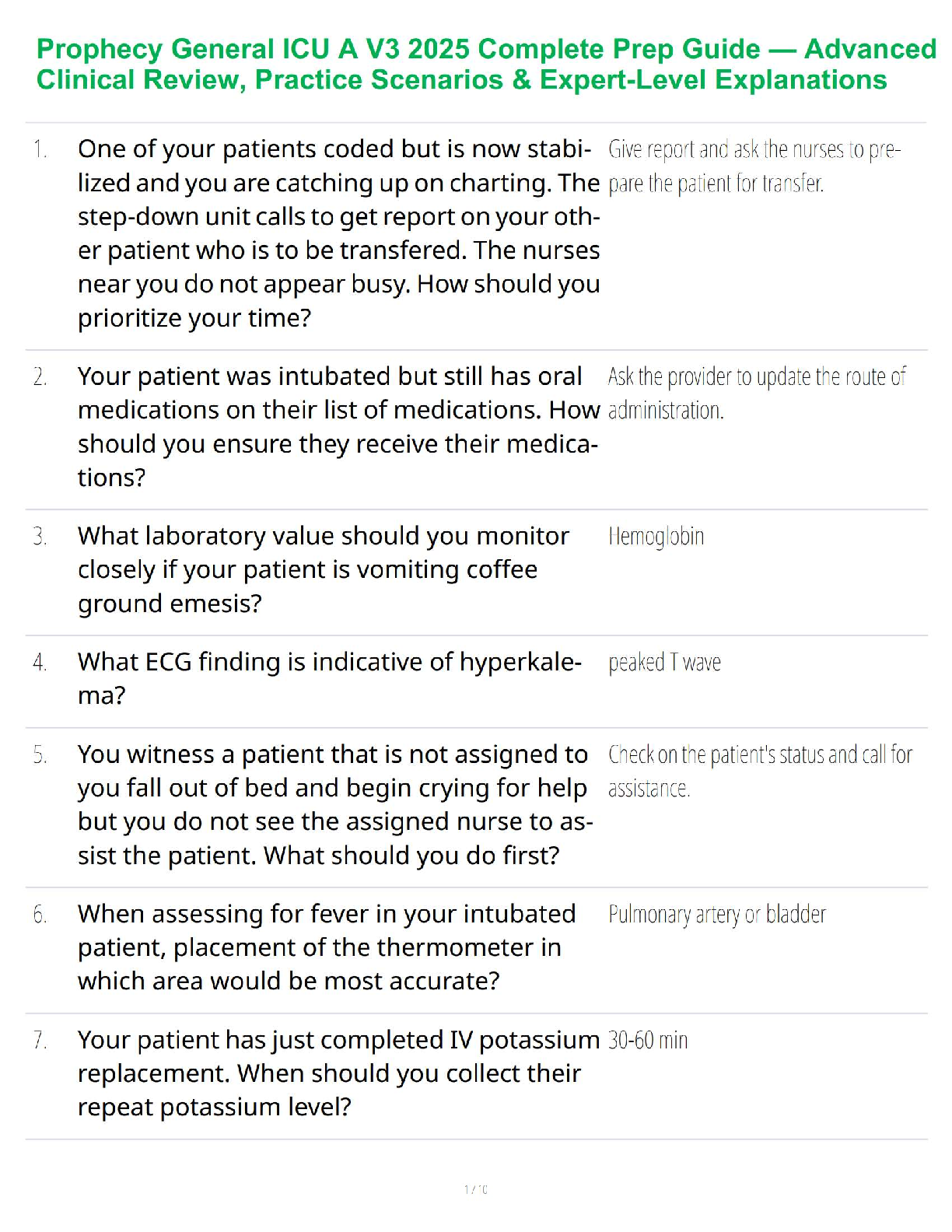 nursing care > STUDY GUIDE > Prophecy General ICU A V3 2025 Complete Prep Guide — Advanced Clinical Review, Practice Scenarios & Expert-Level Explanations (All)
