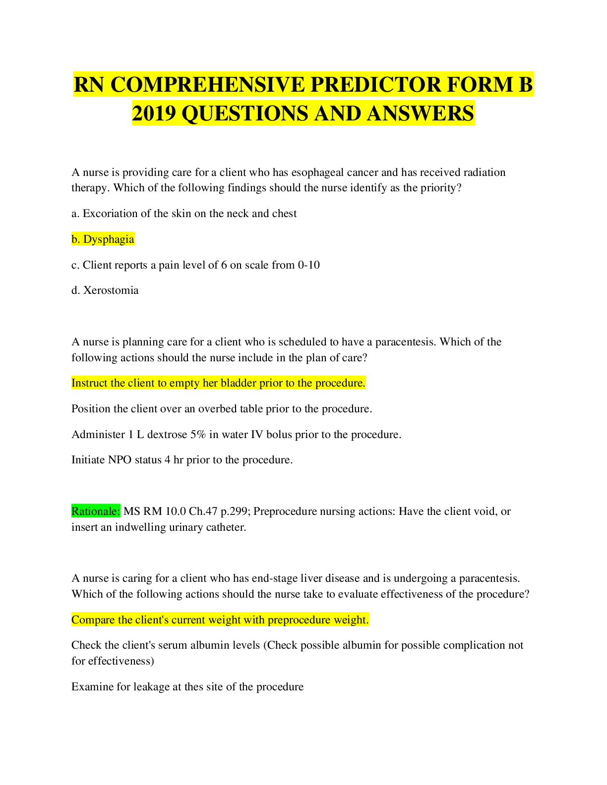 nursing care > EXAMs > (COMPLETE) RN COMPREHENSIVE PREDICTOR 2019 FORM A, B AND C QUESTIONS AND ANSWERS (All)