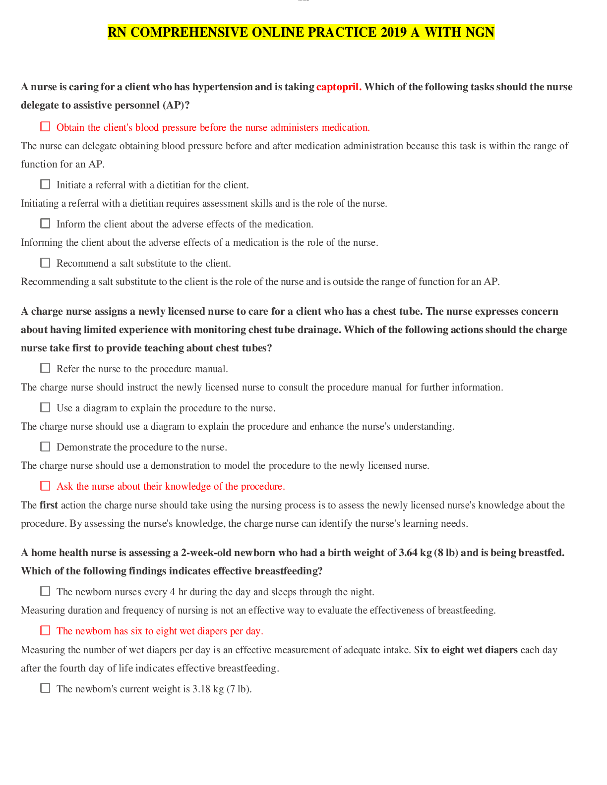nursing care > EXAMs > RN COMPREHENSIVE ONLINE PRACTICE 2019 A WITH NGN (RETAKE) QUESTIONS AND ANSWERS + RATIONALE |GUARANTEE A+ SCORE (All)