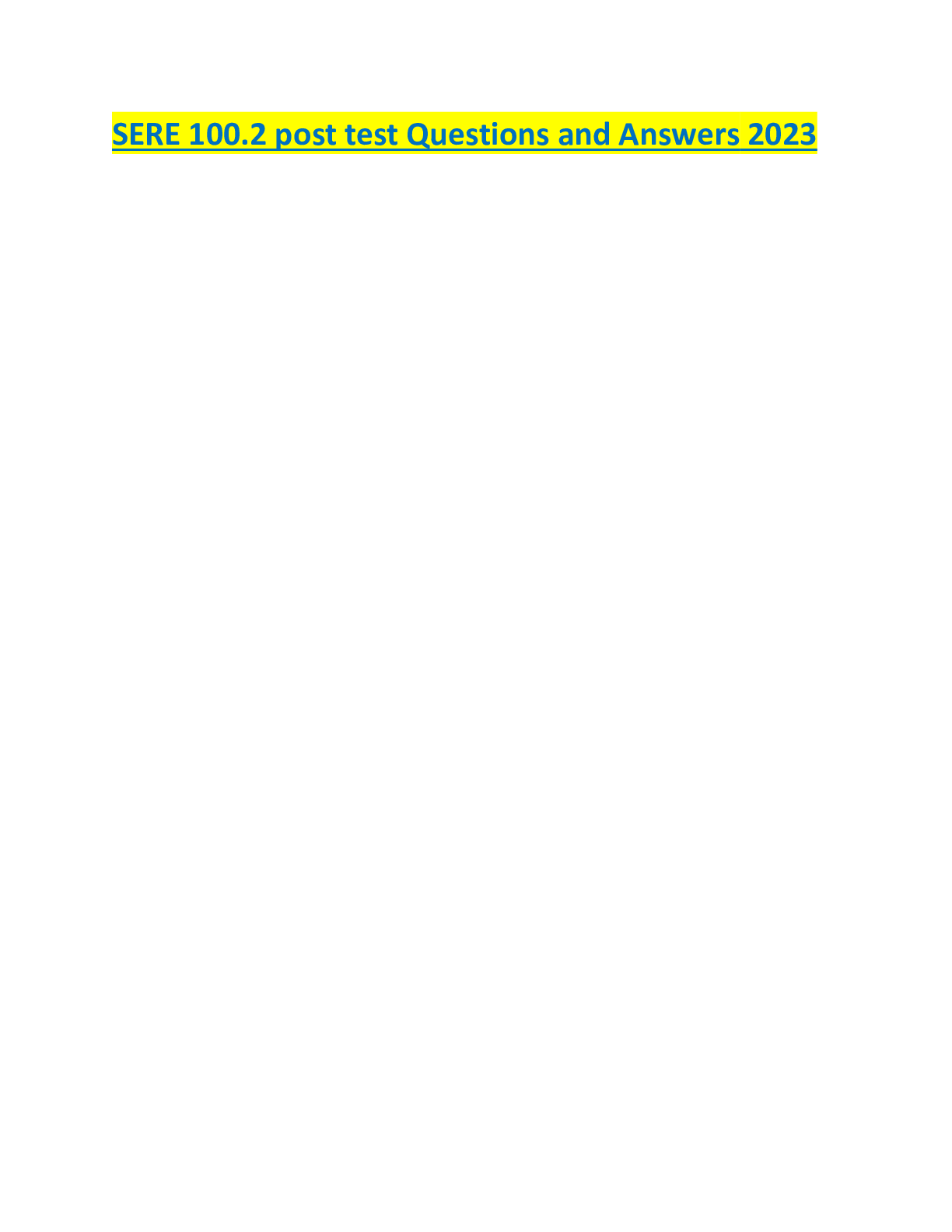 nursing care > EXAMs > SERE 100.2 post test Questions and Answers 2023 (All)