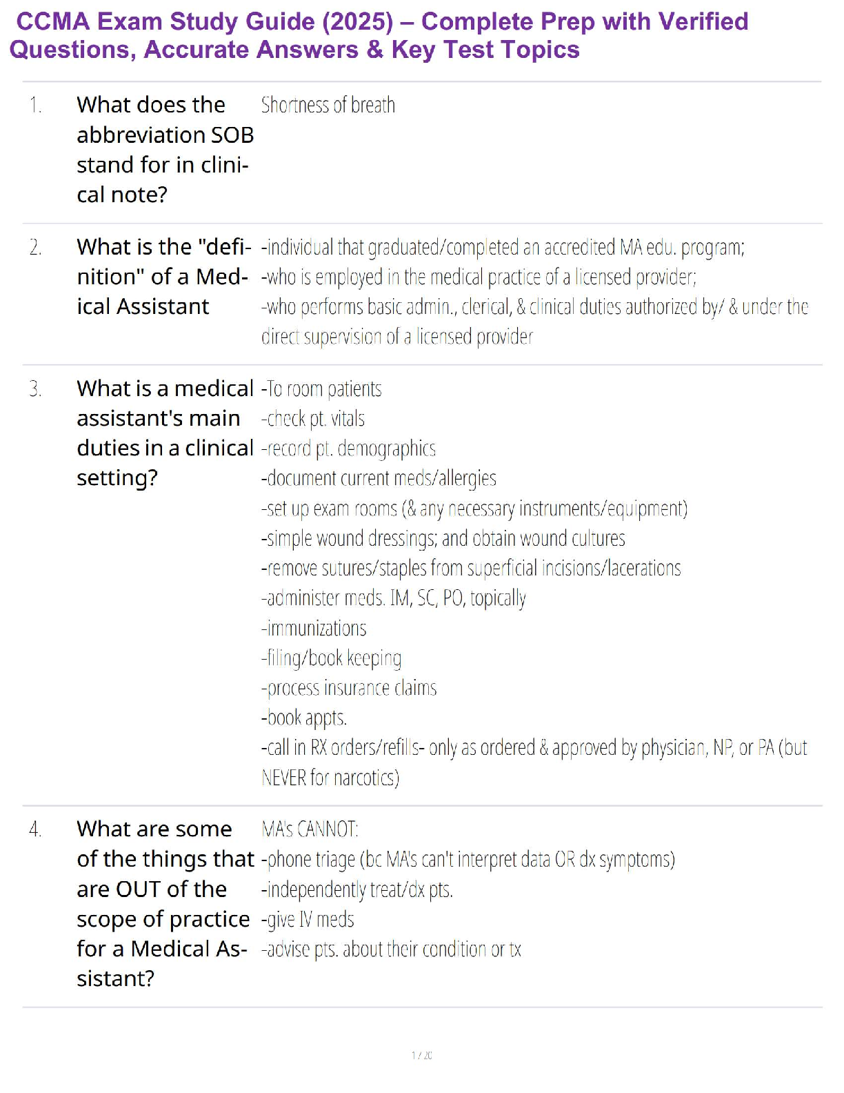 NHA CCMA > EXAMs > CCMA Exam Study Guide (2025) – Complete Prep with Verified Questions, Accurate Answers & Key Test Topics (All)