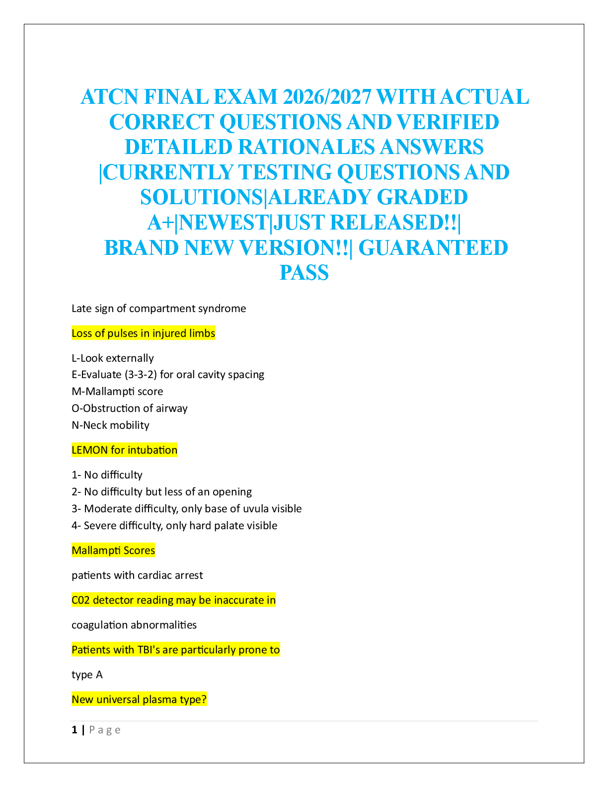 Trauma Nurse Core Course (TNCC) > EXAM > ATCN FINAL EXAM 2026/2027 (All)