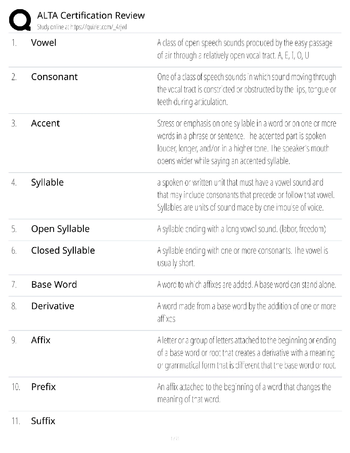 Language Development > QUESTIONS & ANSWERS > ALTA Certification Exam / CALT Practice Test / 2025 Dyslexia Therapy Review / Score 100% (All)