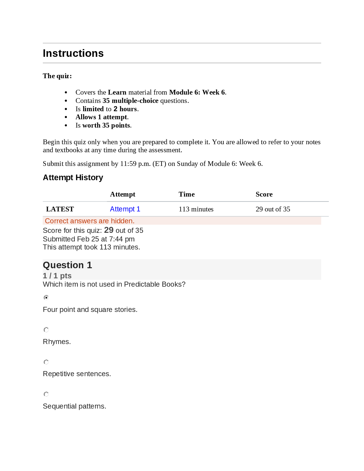 Language Development > EXAM > EDLC 554 Quiz 6 | Score 29/35 | Liberty University (All)