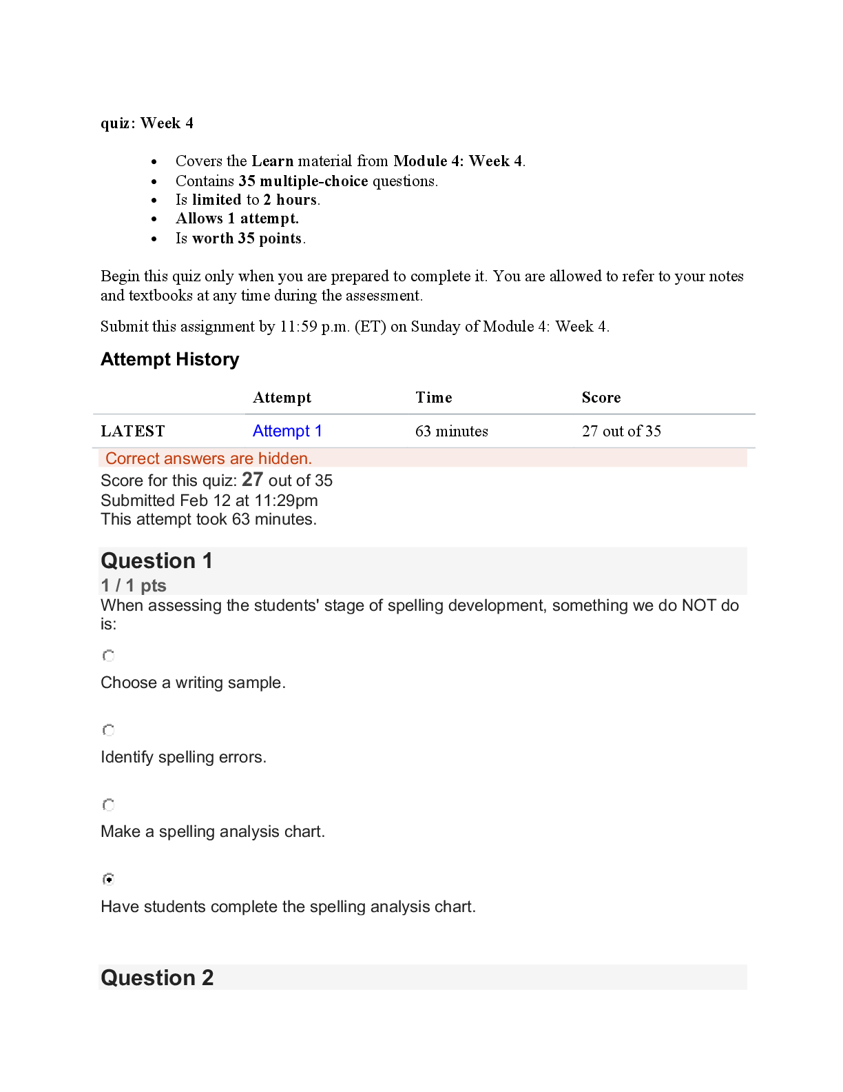 Language Development > EXAM > EDLC 554 Quiz 4 | Score 27/35 | Liberty University (All)