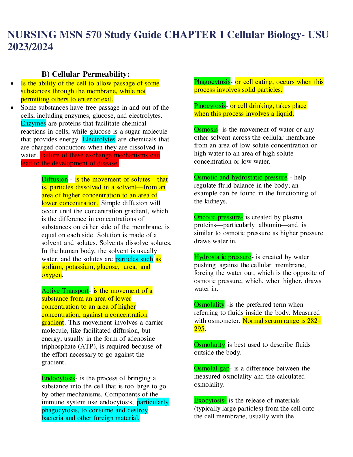 MSN 571 > EXAMs > NURSING MSN 570 Study Guide CHAPTER 1 Cellular Biology- USU 2023/2024 (All)