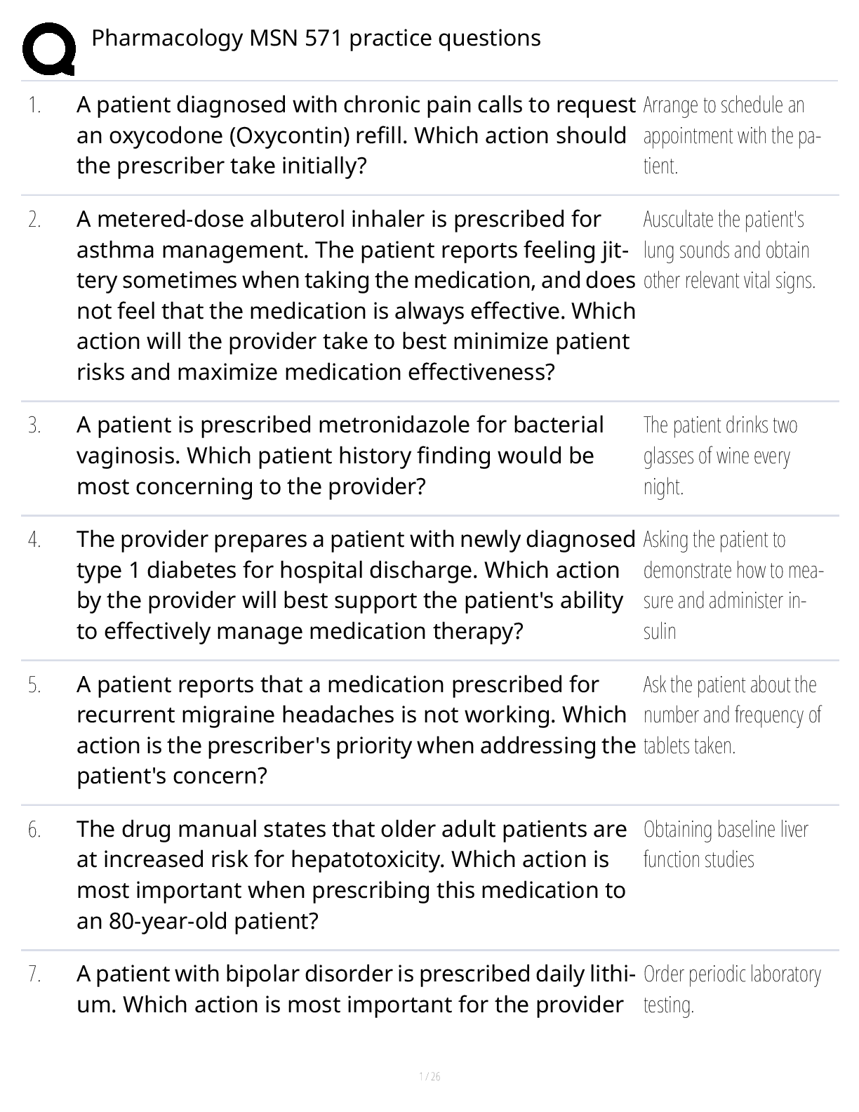 MSN 571 > EXAMs > Pharmacology MSN 571 Practice Questions (All)