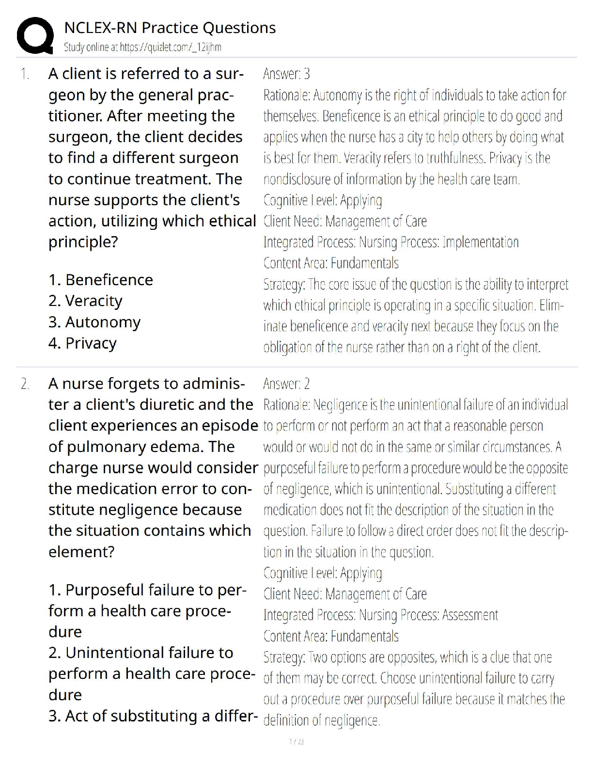 Mark Klimek NCLEX > QUESTIONS & ANSWERS > Mark Klimek NCLEX Review Questions: NURSE AND THE LAW Already Passed (All)