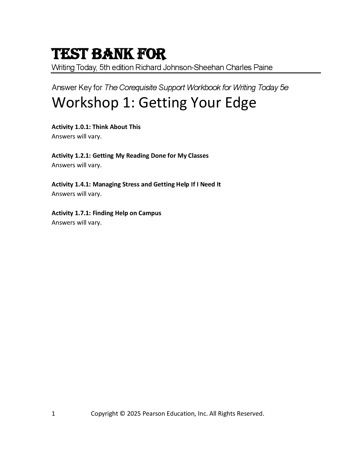 Screen and Play Writing > TEST BANKS > Test bank For Writing Today, 5th edition Richard Johnson-Sheehan Charles Paine (All)