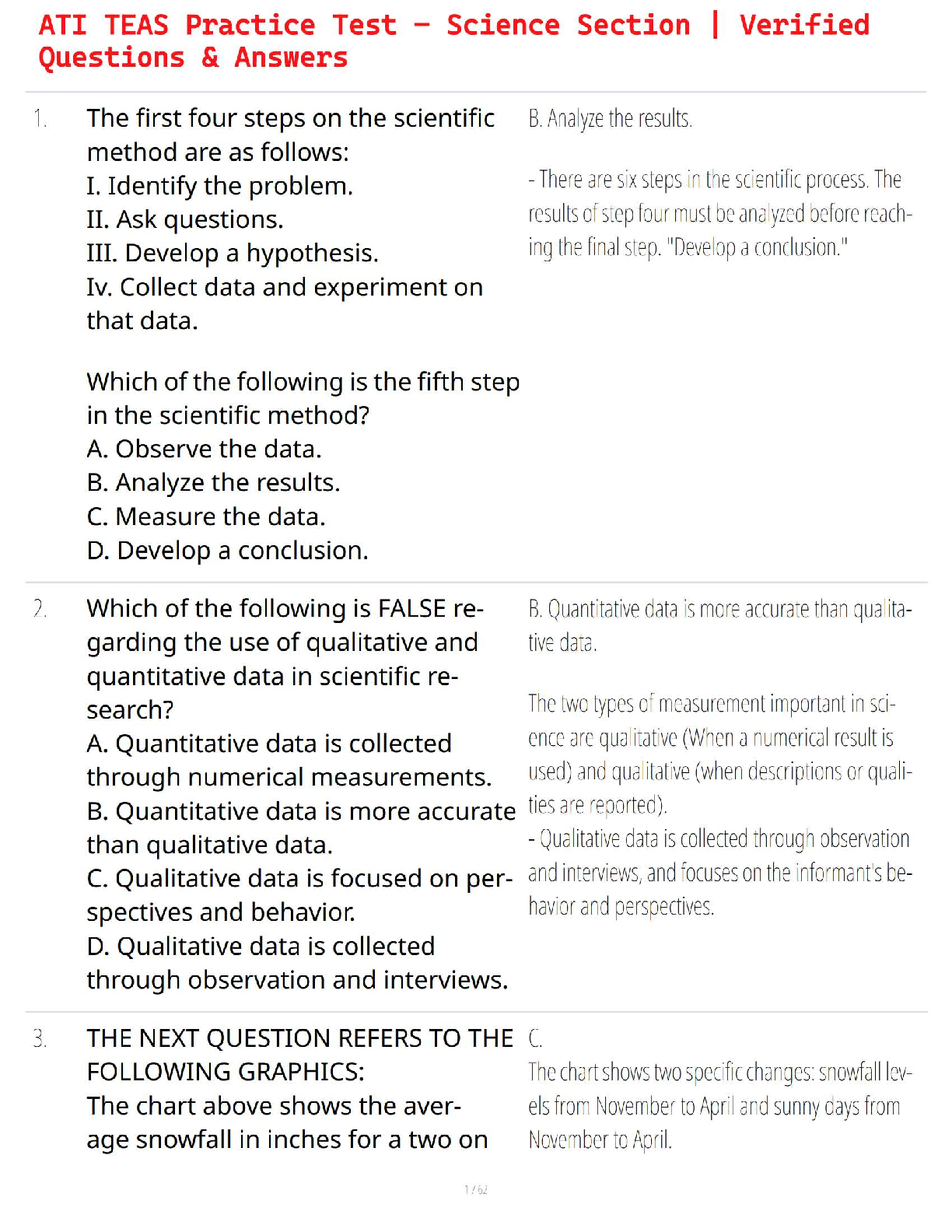 ATI TEAS 7 SCIENCE > QUESTIONS and ANSWERS > ATI TEAS Practice Test – Science Section | Verified Questions & Answers (All)