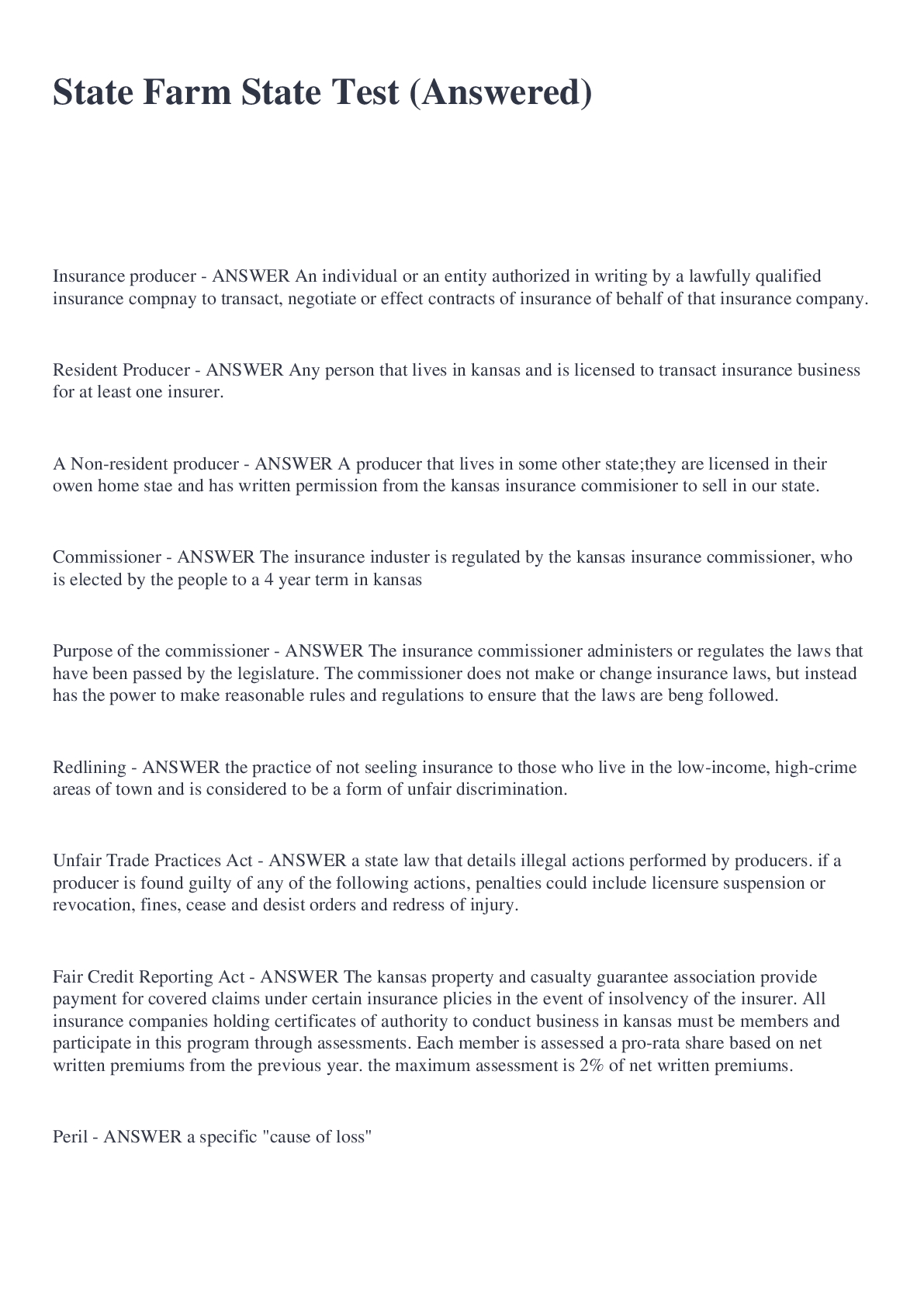 Social Sciences > EXAM > State Farm State Test (Answered) (All)