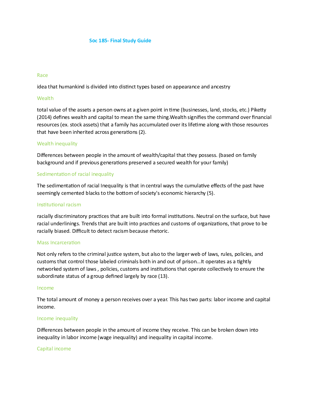 Social Sciences > EXAMs > Soc 185- Final Study Guide questions and answers complete solution 100% correct 2024/2025 (All)