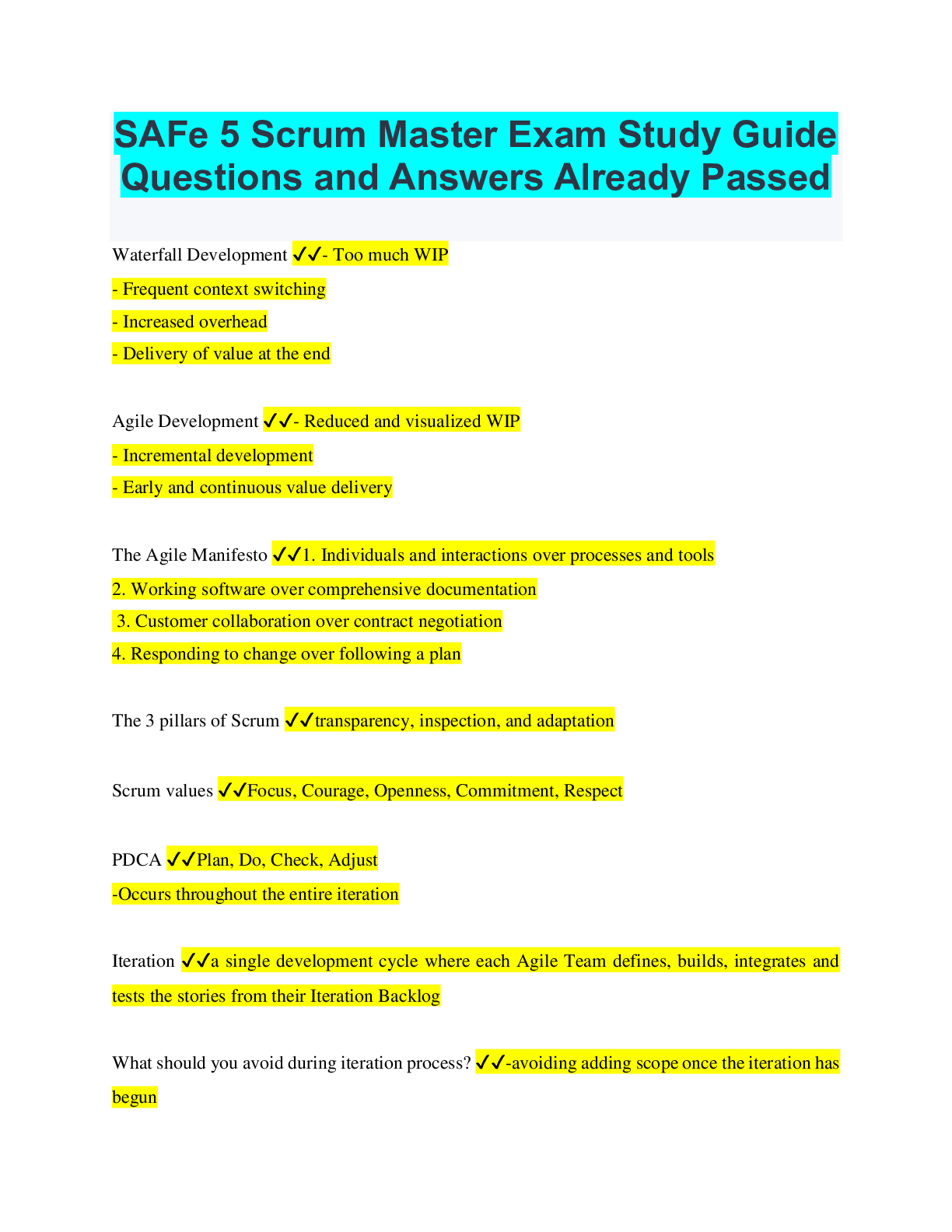 Social Sciences > EXAMs > SAFe 5 Scrum Master Exam Study Guide Questions and Answers Already Passed (All)