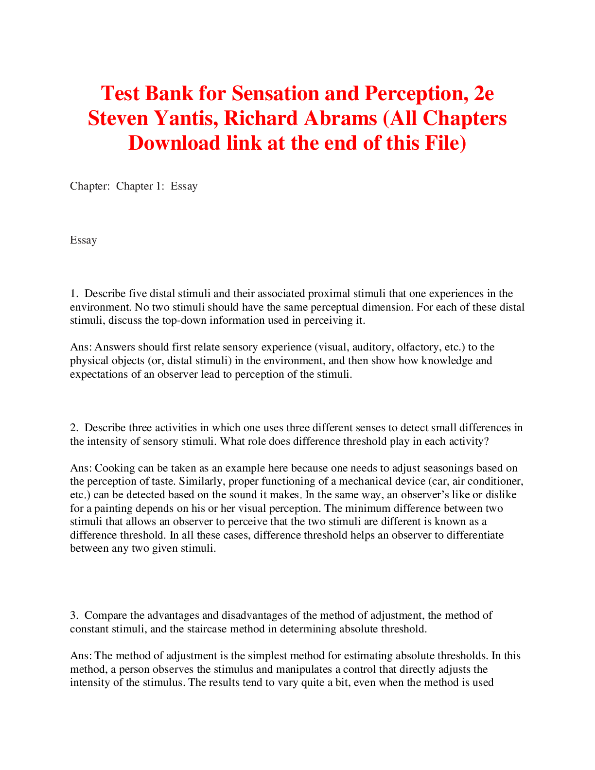 Social Sciences > TEST BANKS > Sensation and Perception, 2e Steven Yantis, Richard Abrams (Test Bank) (All)
