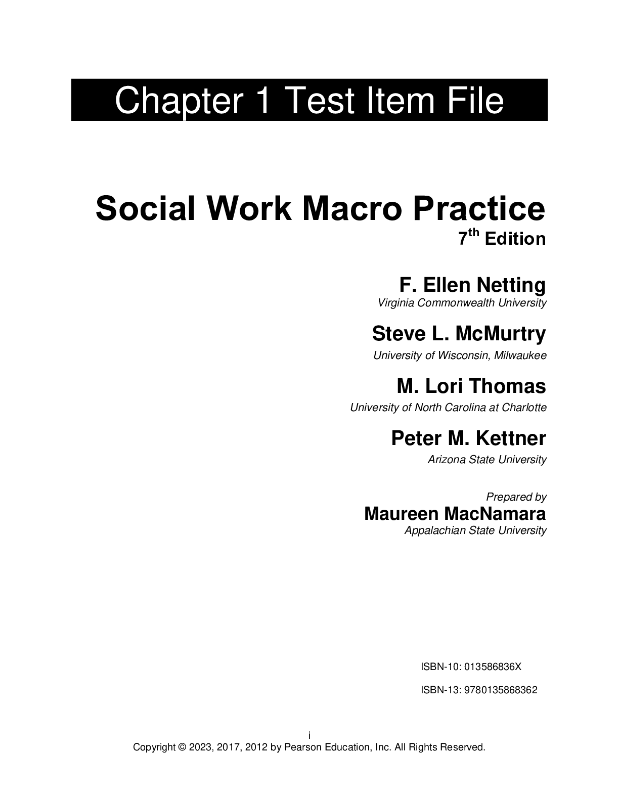 Social Sciences > TEST BANKS > Test Bank For Social Work Macro Practice, 7th Edition by F Ellen Netting, Steve L. McMurtry, M Lori Thomas, Peter M. Kettner Chapter 1-12 (All)