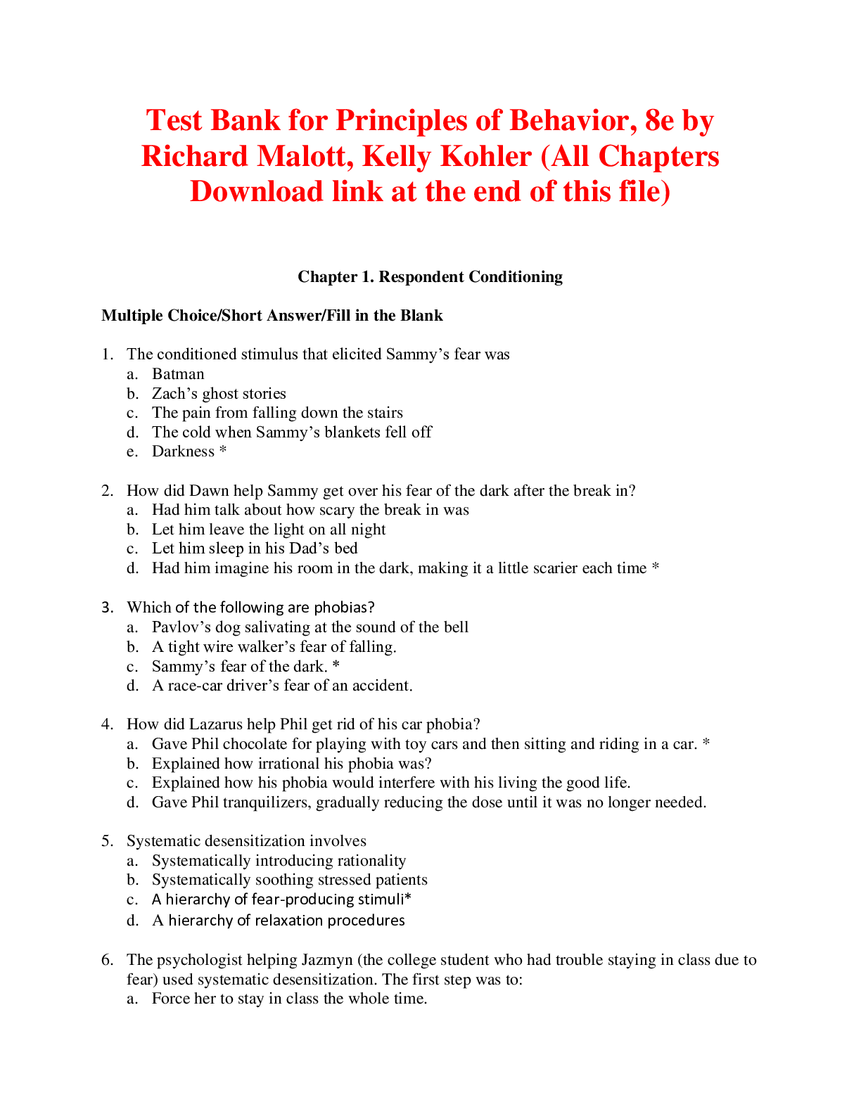 Social Sciences > TEST BANKS > Principles of Behavior, 8e by Richard Malott, Kelly Kohler (Test Bank) (All)