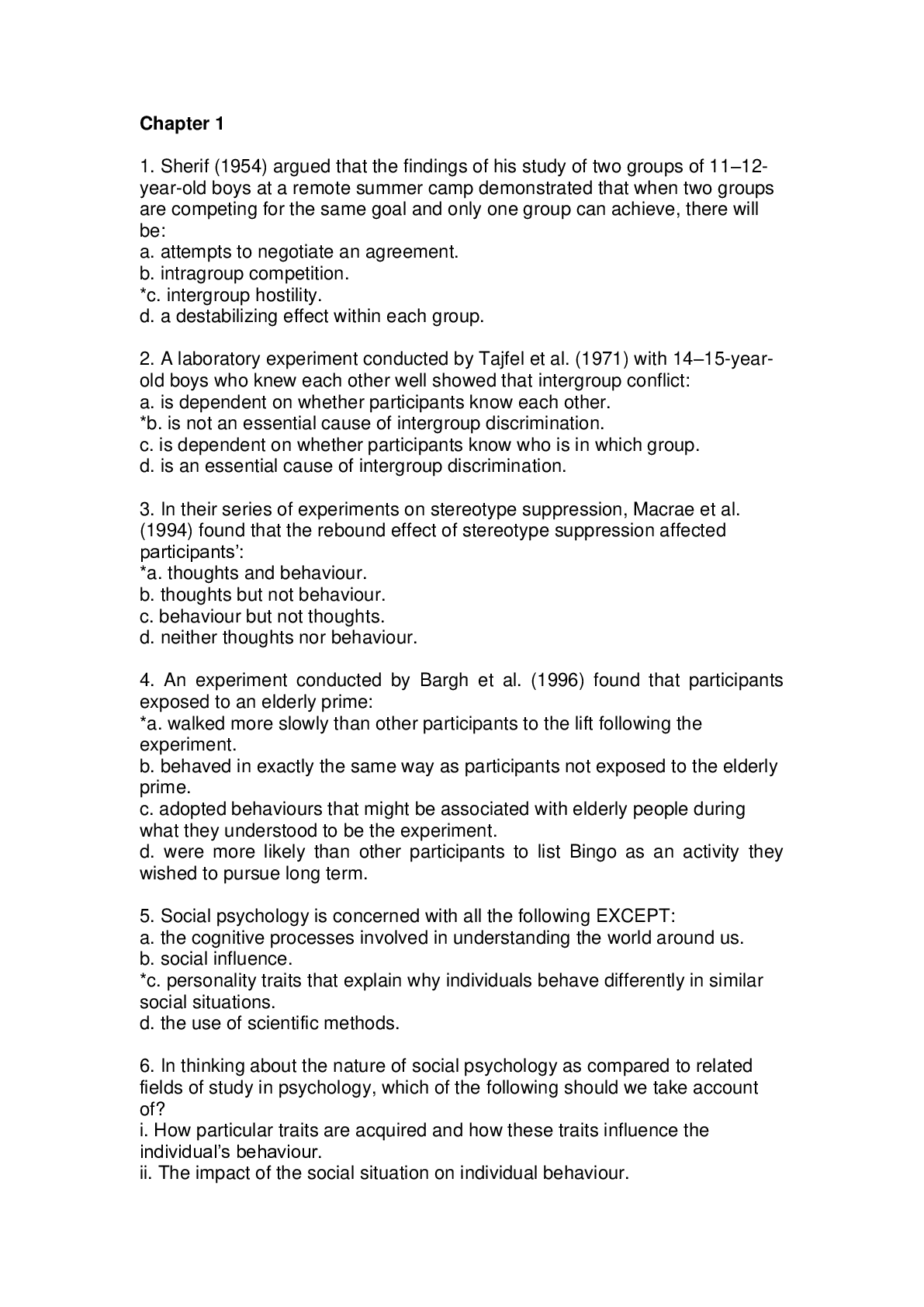 Social Sciences > TEST BANKS > An Introduction to Social Psychology 6e Miles Hewstone Wolfgang Stroebe Klaus Jonas (Test Bank) (All)