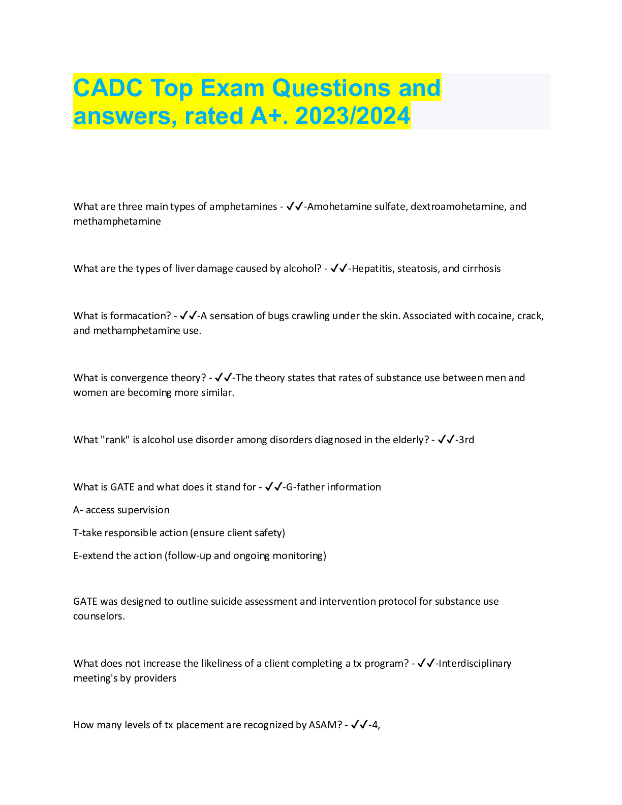 Social Sciences > QUESTIONS & ANSWERS > CADC Top Exam Questions and answers, rated A+. 2023/2024 (All)