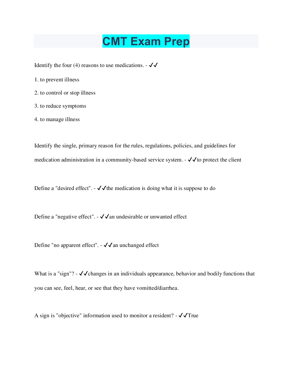 Social Sciences > QUESTIONS & ANSWERS > CMT Final Exam Study Guide (All)