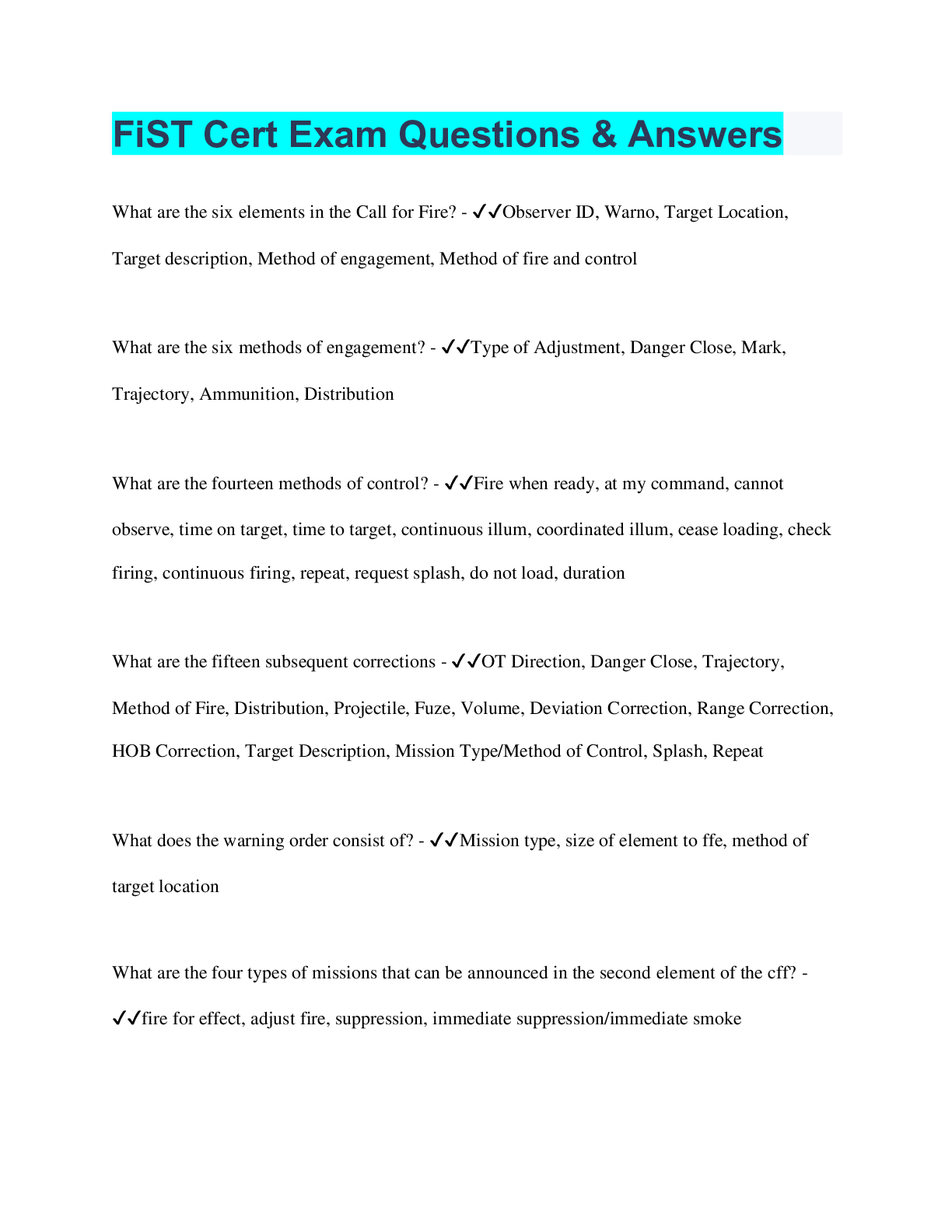 Social Sciences > QUESTIONS & ANSWERS > FiST Cert Exam Questions & Answers (All)