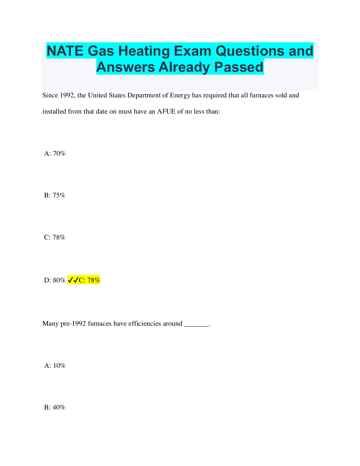 Social Sciences > QUESTIONS & ANSWERS > NATE Gas Heating Exam Questions and Answers Already Passed (All)