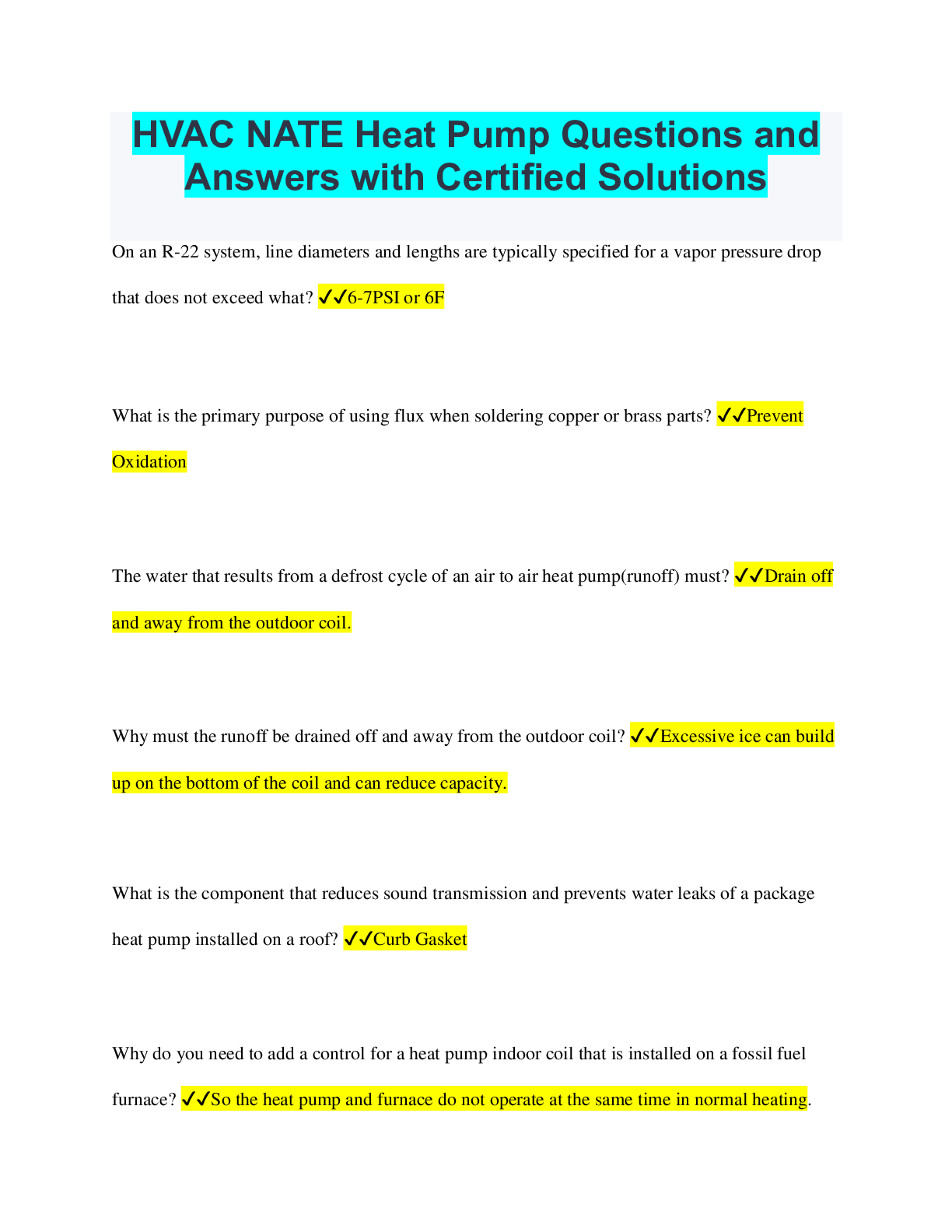 Social Sciences > QUESTIONS & ANSWERS > HVAC NATE Heat Pump Questions and Answers with Certified Solutions (All)