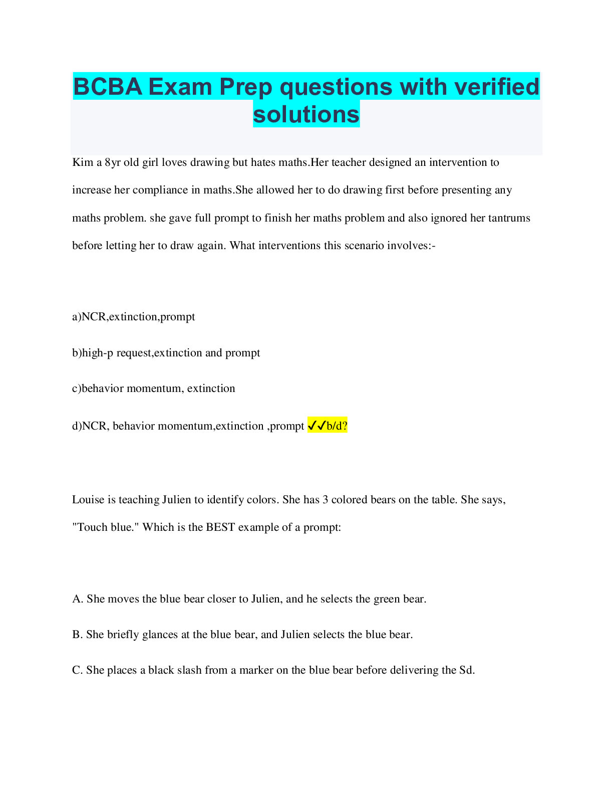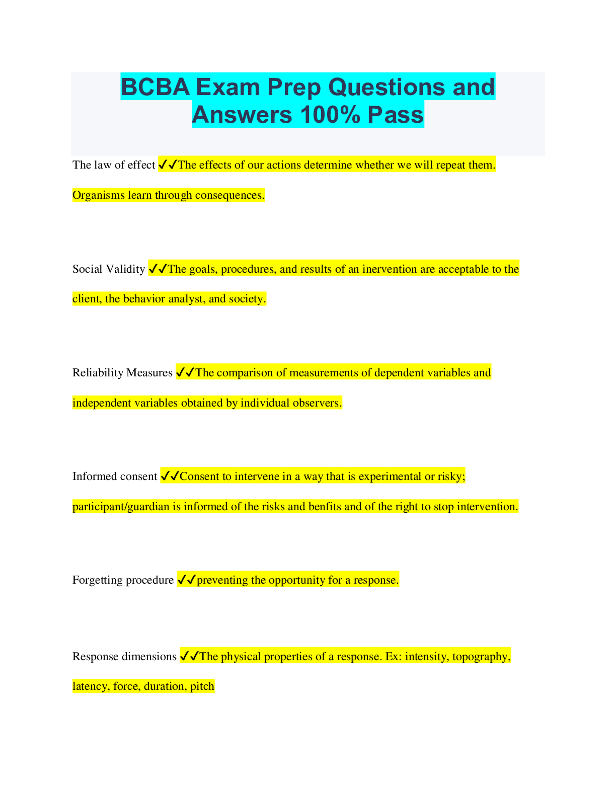 Social Sciences > QUESTIONS & ANSWERS > BCBA Exam Practice Questions with Certified Solutions (All)