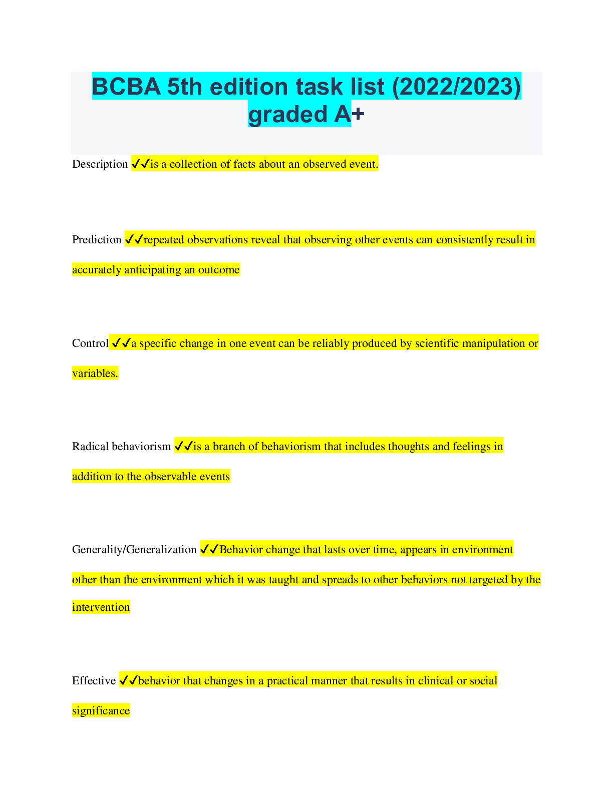 Social Sciences > QUESTIONS & ANSWERS > BCBA 5th edition task list (2022/2023) graded A+ (All)