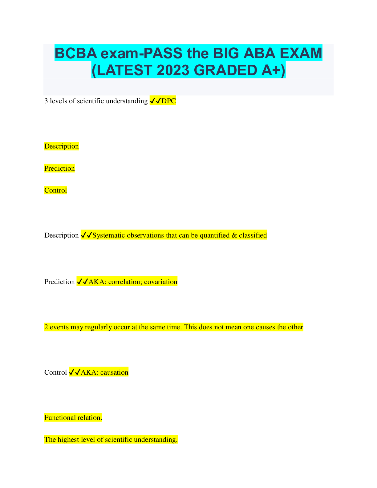 Social Sciences > QUESTIONS & ANSWERS > BCBA exam-PASS the BIG ABA EXAM (LATEST 2023 GRADED A+) (All)